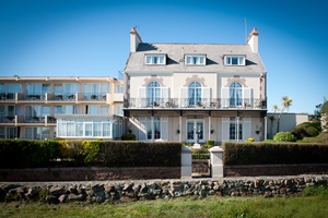 Ligging:uitkijkend over St. Clements Bay op de zuidoostelijke punt van Jersey. Slechts de kustweg scheidt het hotel van het strand en